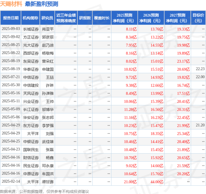 华安证券股份有限公司张志邦近期对天赐材料进行研究并发布了研究报告《25H1业绩符合预期,多元化布局打开新空间》,给予天赐材料买入评级。